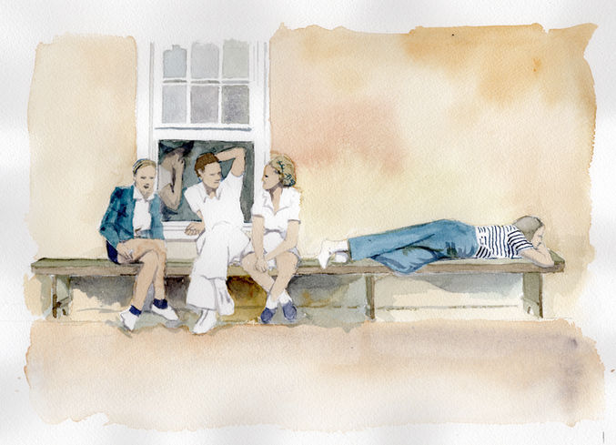My paintings are often based on vintage black and white snapshots found in eBay lots. I like the idea of "rescuing" these, and giving a contemporary viewer a chance to see interesting stories and lives. Relationships between the subjects in the photos are often very clear. If there are captions, I'm often searching for more information about them. These photo lots often fall on the eBay market because the owner passed away without heirs. Batches of photos from the same source can tell an evolving story.